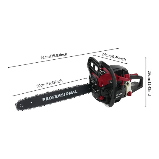 20 Zoll Benzin Kettensäge 58 cm³ 2,4 kW 2 Takt Motor 10000 U min Luftgekühlt Handgeführte Motorsäge für Baumschnitt und Holzarbeiten